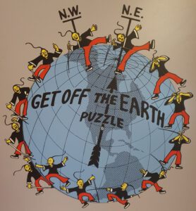Diese kleine Ausstellung zeigt mathematisches Spielzeug. Ein Krieger verschwindet auf geheimnisvolle Weise (siehe links die Ausgangssituation), ein Globus schwebt frei im Raum, ein gekreuzter Schwalbenschwanz lässt sich gewaltfrei lösen, eine Eulerscheibe tanzt auf einem Spiegel, ein Deichgraf steht zur Hälfte Kopf und noch anderes mehr. Lassen sie sich überraschen.