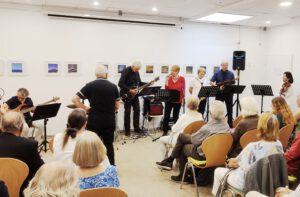 Ein kurzer Umbau für die elfköpfige Salsaband HAVANA war noch nötig, dann loderte das afro-kubanische Feuerwerk dieser erfahrenen Musiker*innen. Kurt Klose hatte sie alle zusammengetrommelt und noch am Freitag und Samstag eine Probe in den Räumen des MCG organisiert. HAVANA ist eine Projektband, die bereits seit 44 Jahren immer wieder zusammen kommt. Diesmal waren Gunnar Hofmann, Detlef Landeseck, Jürgen Kitschig, Rey Valencia, Gary Winters, Urban Beyer, Dieter Schmigelok, Gert Woyczchowski, Heiko Biermann und Sabine Wucherpfennig mit Kurt Klose auf der Bühne. So waren im Repertoire auch einige Kompositionen von Kurt Klose zu hören, u.a. La primera vez, Fiesta pa ti, Evestorf, Colores del amor und Indiferencia.