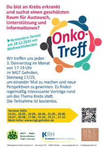 Am 16.01.2025 begann die Veranstaltungsreihe mit monatlichen Treffen im MGT, der Onko-Treff.